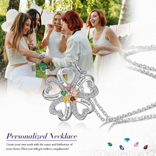 Personalized Name Engraved Birthstone Necklace for Mom
