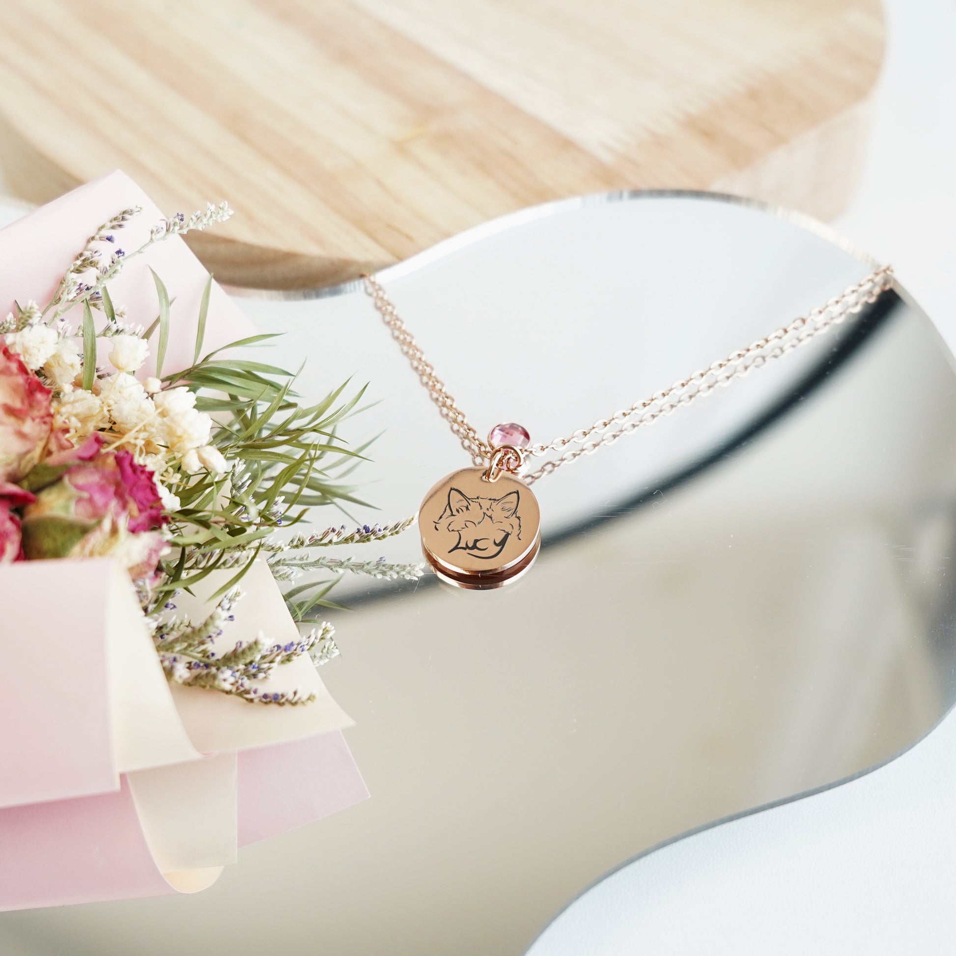 Our Custom Pet Photo Ears Outline Necklace are the perfect way to show your love for your furry friend. Every necklace is custom-made based on a picture of your pet, so you can be sure that it's one-of-a-kind! We'll even engrave a message of your choosing on the back for free.