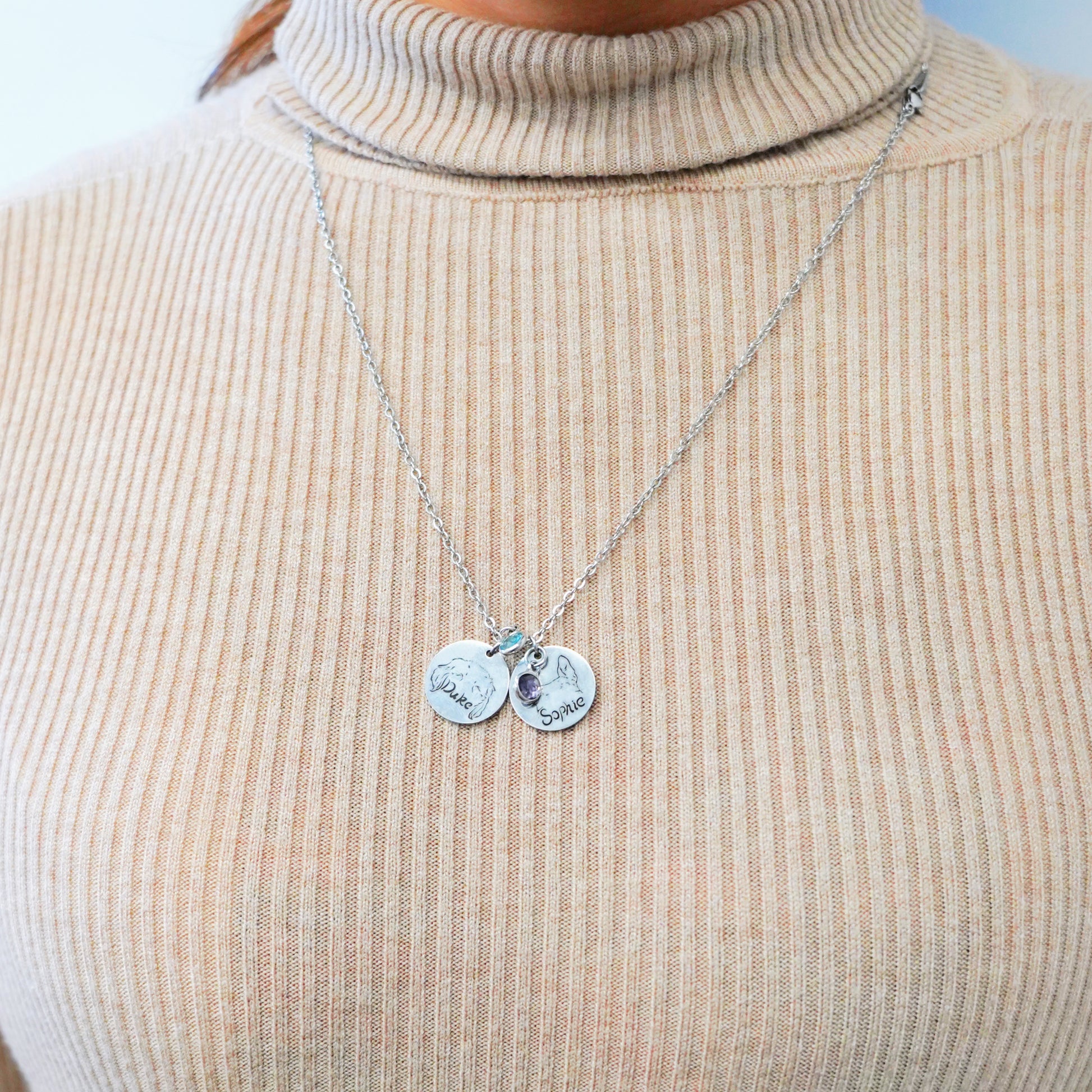 I lost my dog six months ago, and not a day goes by that I don't think of her. I wear this memorial pendant necklace every day, and it helps me feel like she is close to me. The pendant is printed with an Outline of my pet's ears. This Outline was custom made by the designer based on a picture I uploaded of my pet, each Outline is unique and is a reminder that even though she is gone, she will always be a part of me.
