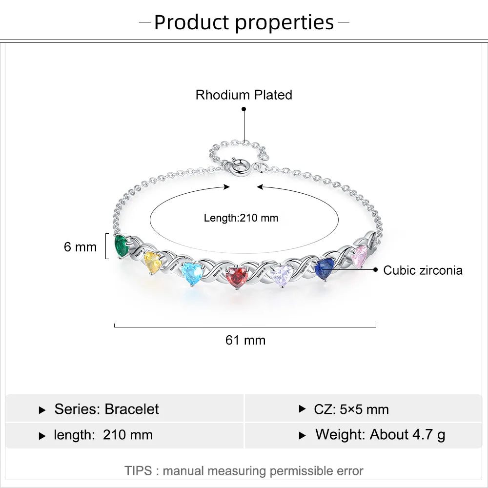 Customized Heart Birthstone Bracelet