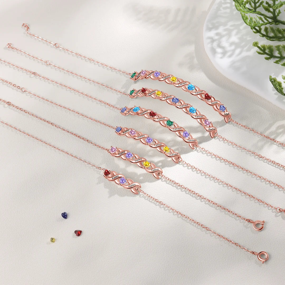 Design Inspiration:This Bracelet-Simply choose up to 7 crystal birthstones and provide up to 7 names of family members to grace a stunning garden of love you can wear with pride. Heart and flower birthstone design express your love for her, you can custom names and choose birthstones of the important person,it is unique and meaningful.