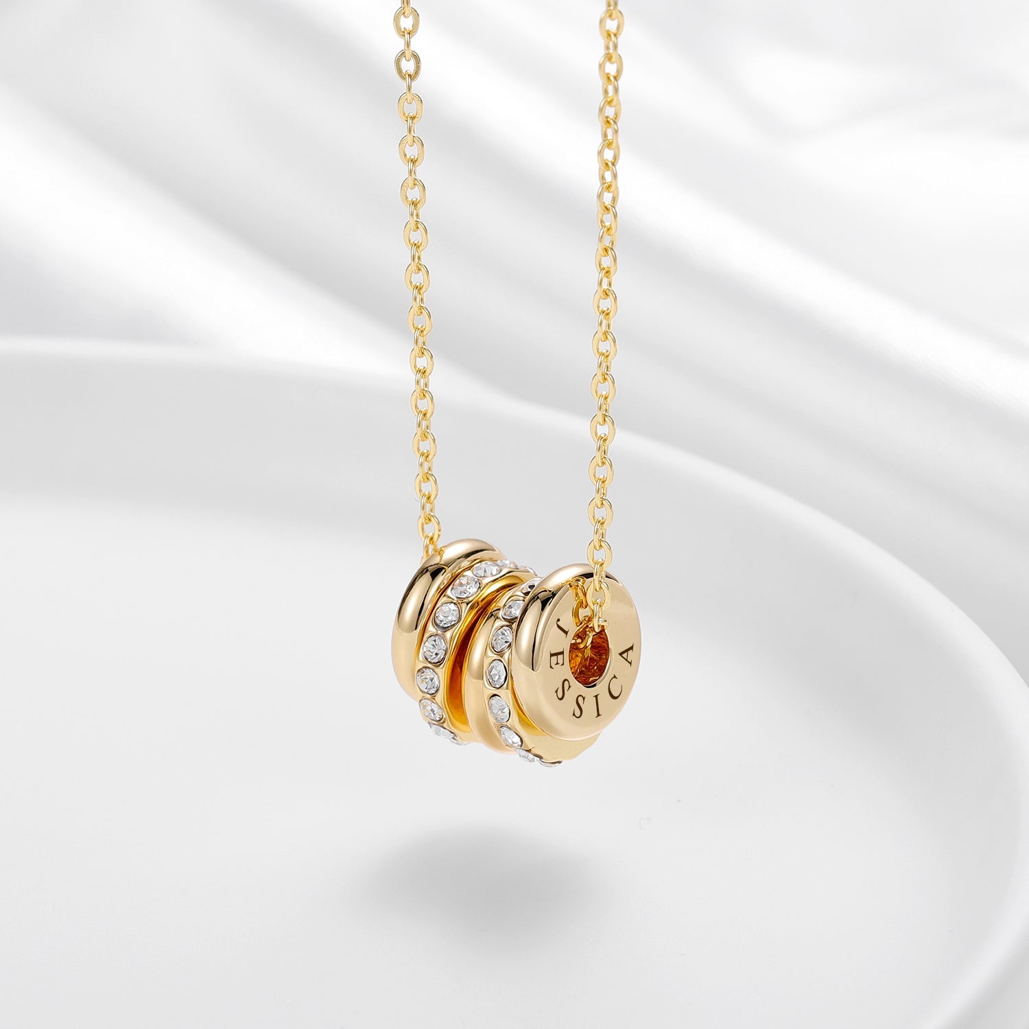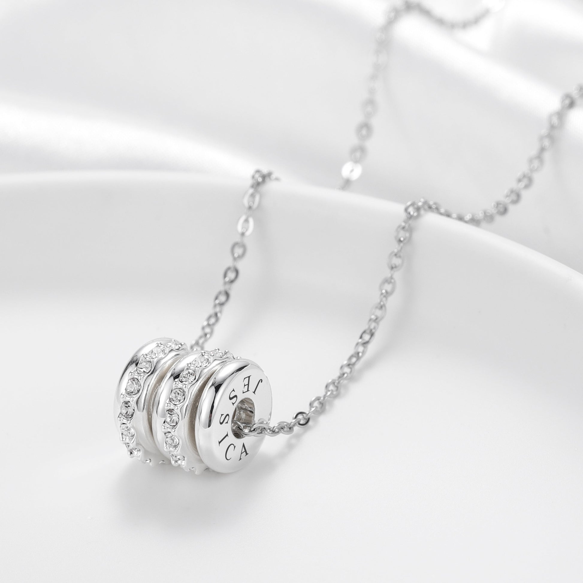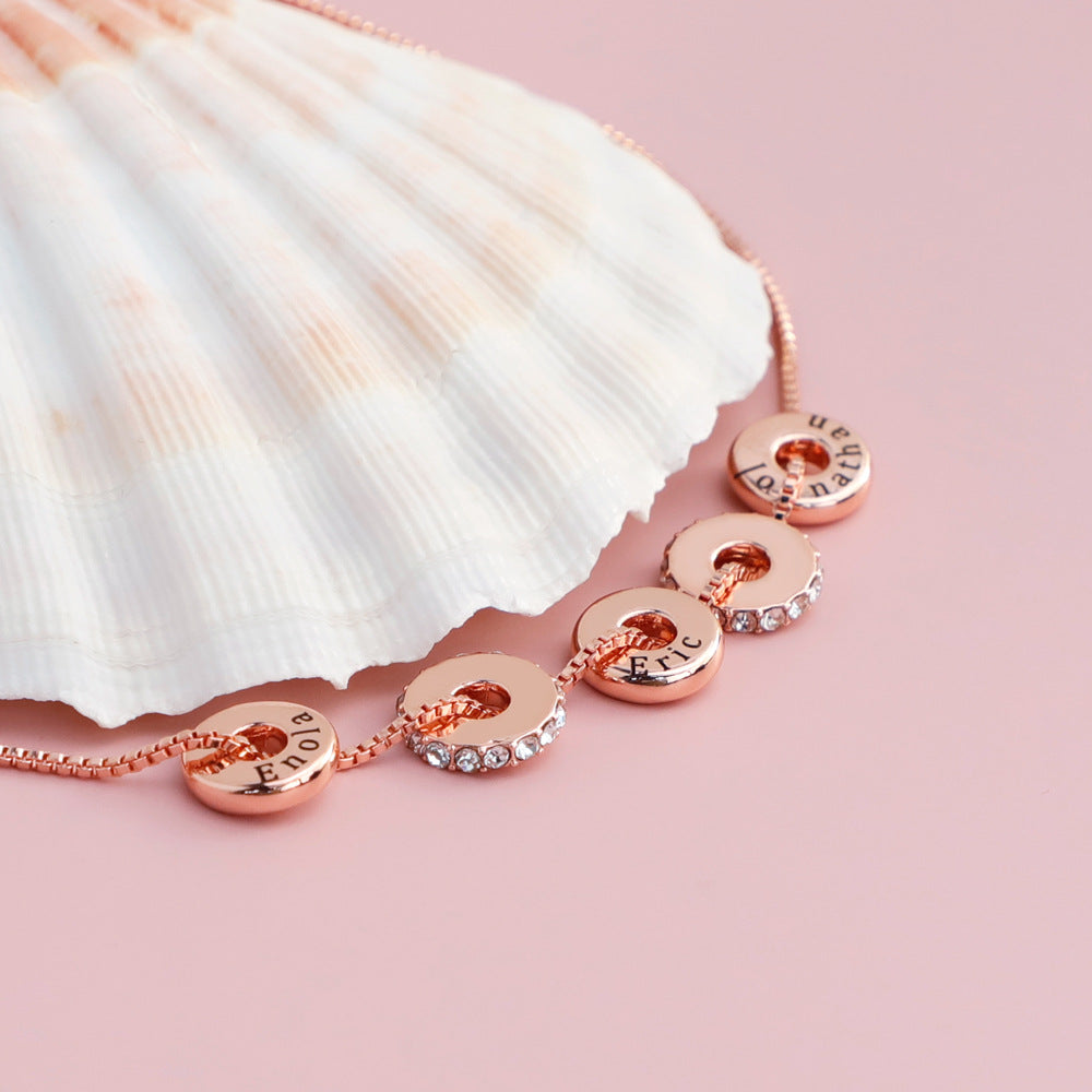 Personalized Engraved Name Crystal Disc Pendants Necklace